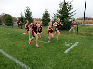 Next it was the Women's Varsity's Turn. We were super excited to see what would happen in this race after we had seen what happened in the Men's Race. Just as we thought the Women's race started out fast and that first mile just flew by. With so many runners going out at the same time it is hard to not get caught up in all of the excitement and go out flying. We are very proud of of how they all Ran.
