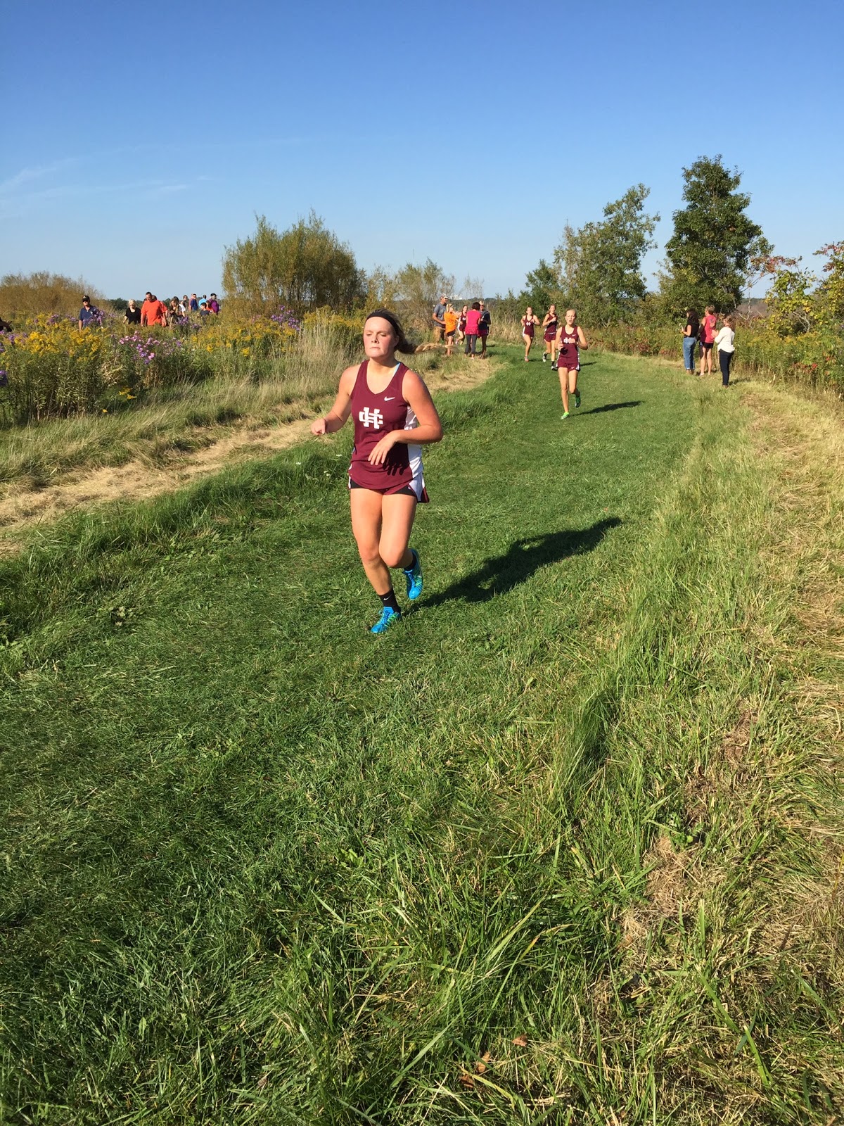 It sure was a warm day for our first Conference meet of the season. For our first conference meet it was HC Vs. Zeeland West at the Unity Christian Cross Country coarse. This coarse has varied terrain starting with a large grassy field and moving to the woods for some trails, hills, and a little loose gravel. Runners needed to be careful in the trails to not over do it going down or they may slip and fall and to run up the hill smart so that they would have energy left when they get to the top.