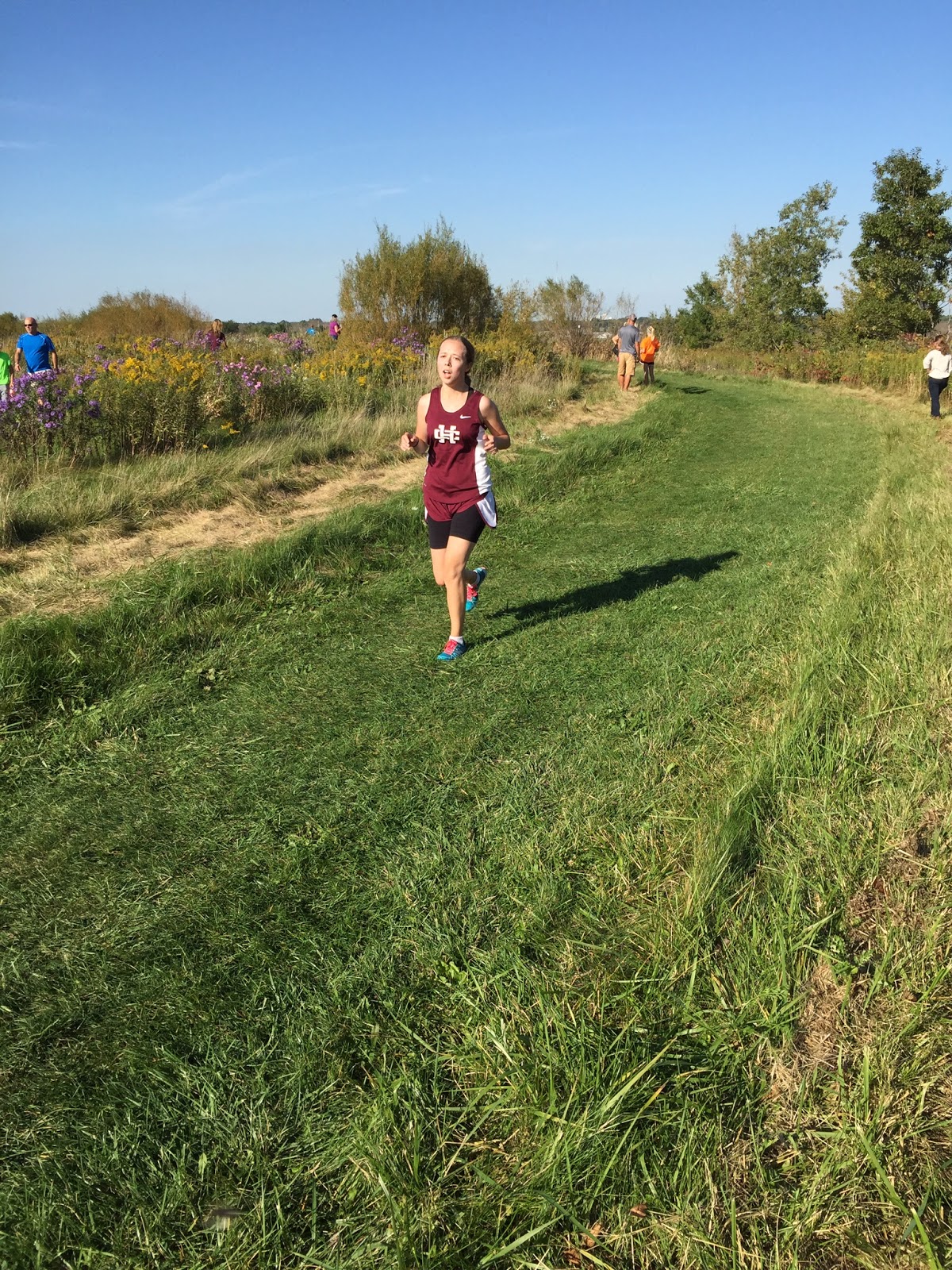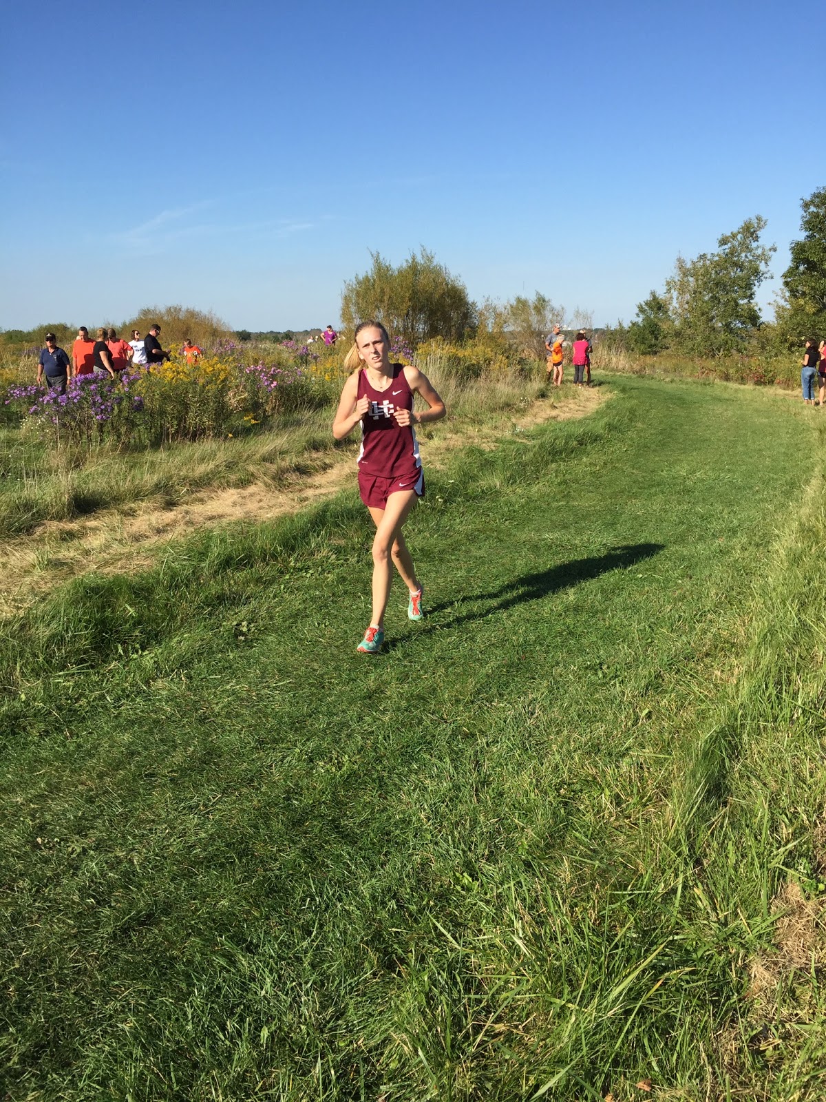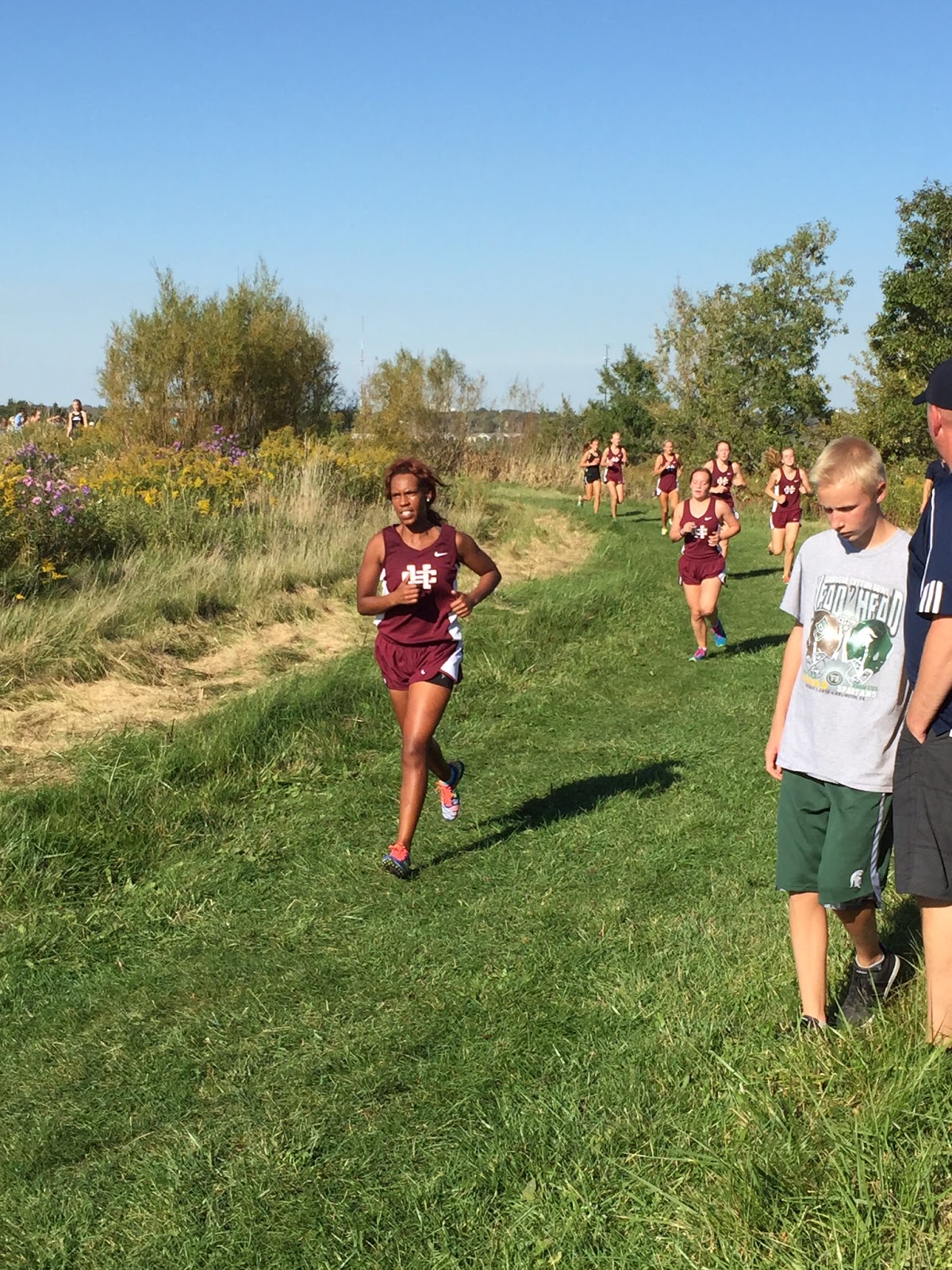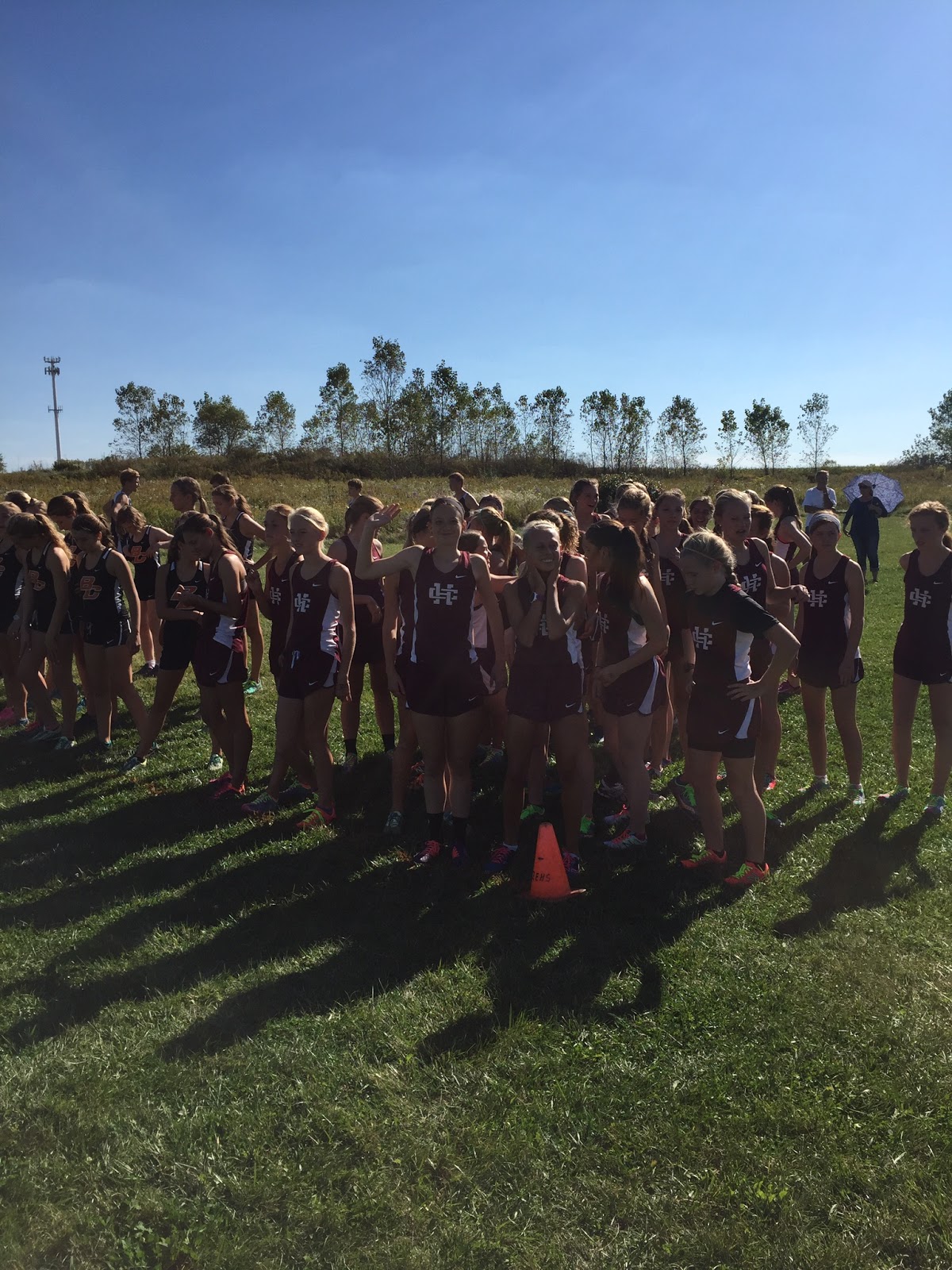 Yesterday was a warm Day (again) for running. It was our second conference meet of the season HC vs. Byron Center. After a slow slightly chaotic start, because we were missing the official starter we did get around to running.
