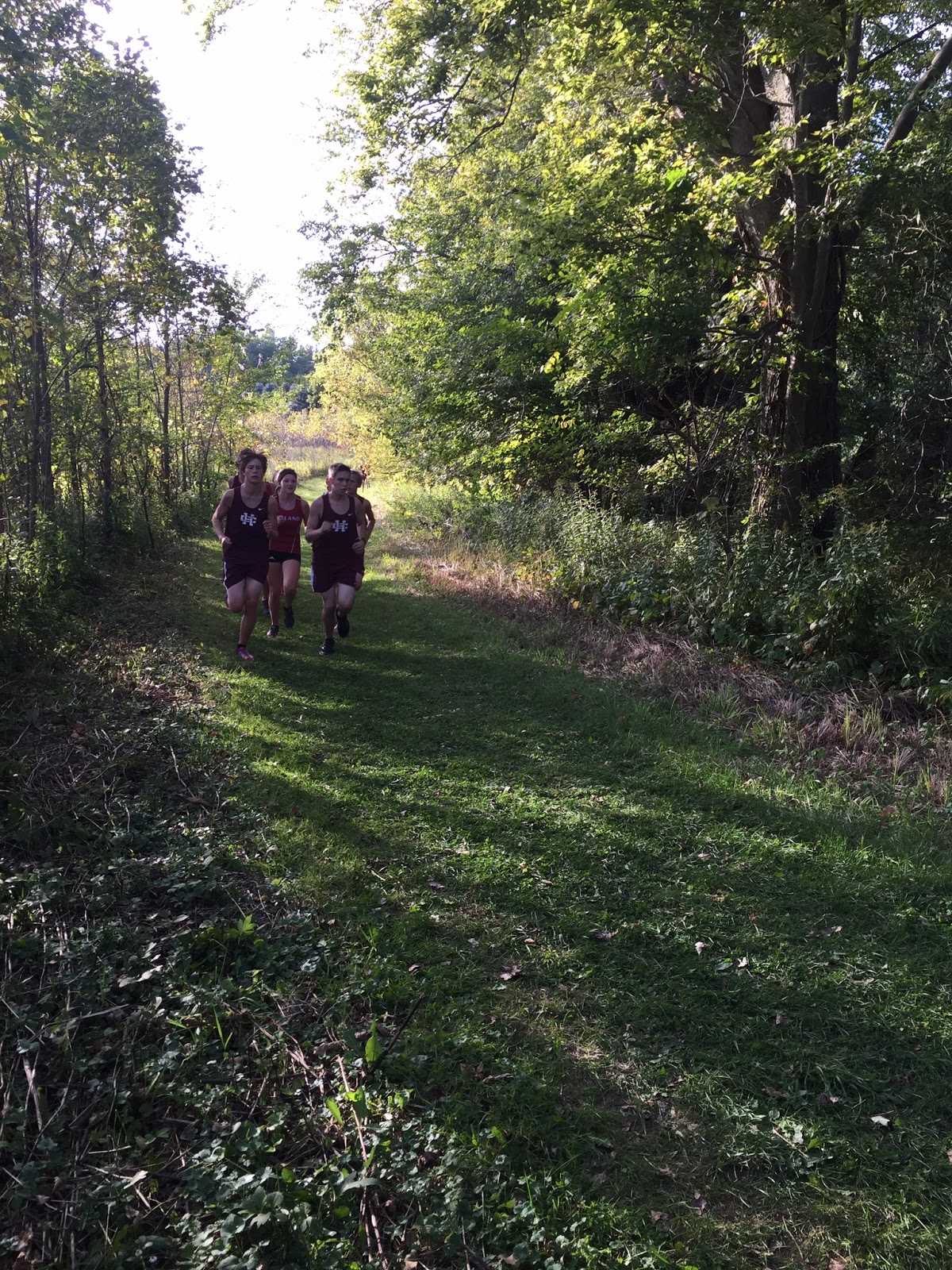 It sure was a warm day for our first Conference meet of the season. For our first conference meet it was HC Vs. Zeeland West at the Unity Christian Cross Country coarse. This coarse has varied terrain starting with a large grassy field and moving to the woods for some trails, hills, and a little loose gravel. Runners needed to be careful in the trails to not over do it going down or they may slip and fall and to run up the hill smart so that they would have energy left when they get to the top.