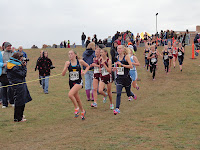 Next it was the Women's Varsity's Turn. We were super excited to see what would happen in this race after we had seen what happened in the Men's Race. Just as we thought the Women's race started out fast and that first mile just flew by. With so many runners going out at the same time it is hard to not get caught up in all of the excitement and go out flying. We are very proud of of how they all Ran.